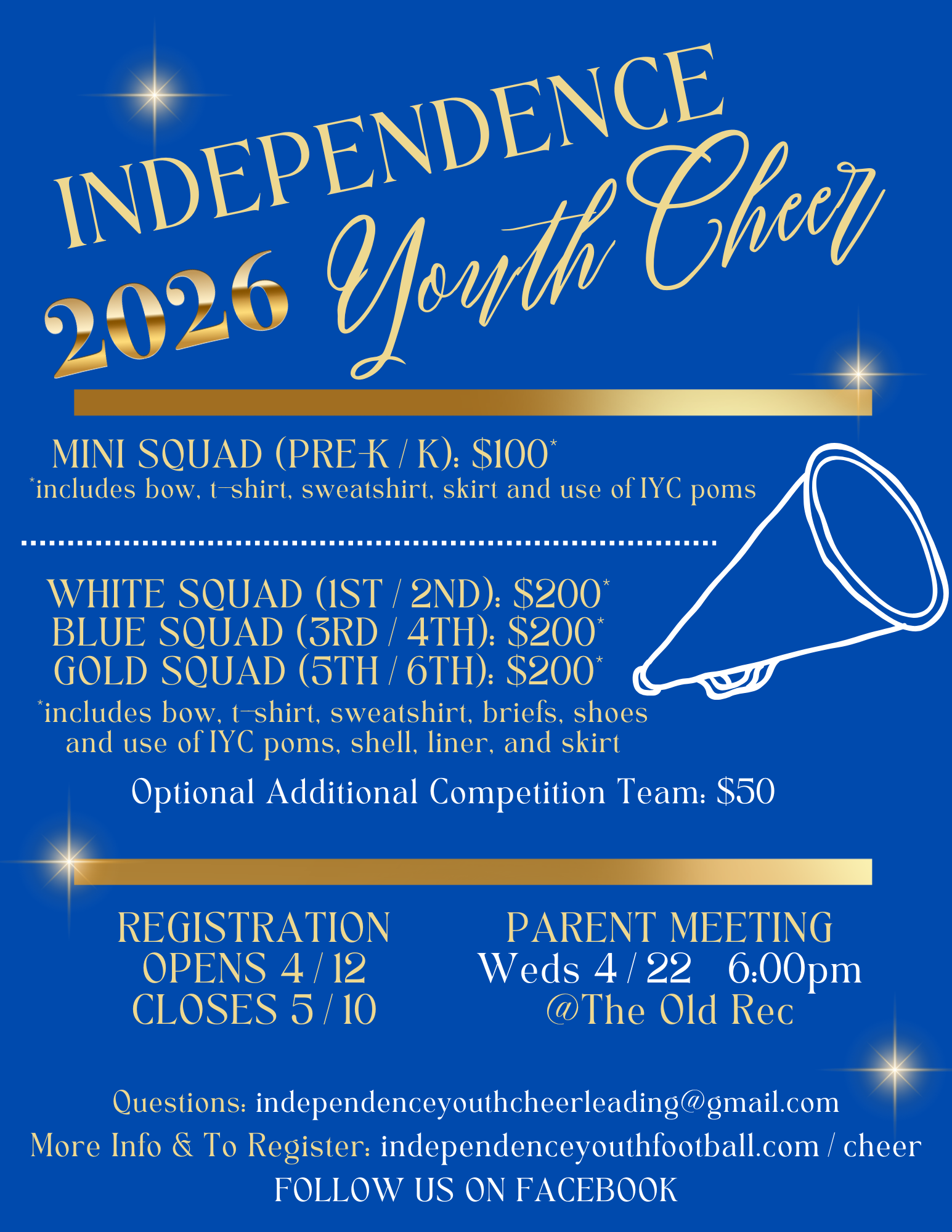 If you have any questions, please email independenceyouthcheerleading@gmail.com.